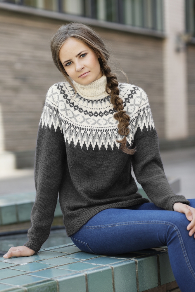 Du kan endda ændre farven på strikkepakken; vælg først den størrelse du vil strikke, så vises udvalget af farver herunder. Bemærk! Mønster bliver altid leveret i strikkepakkens originale farver.