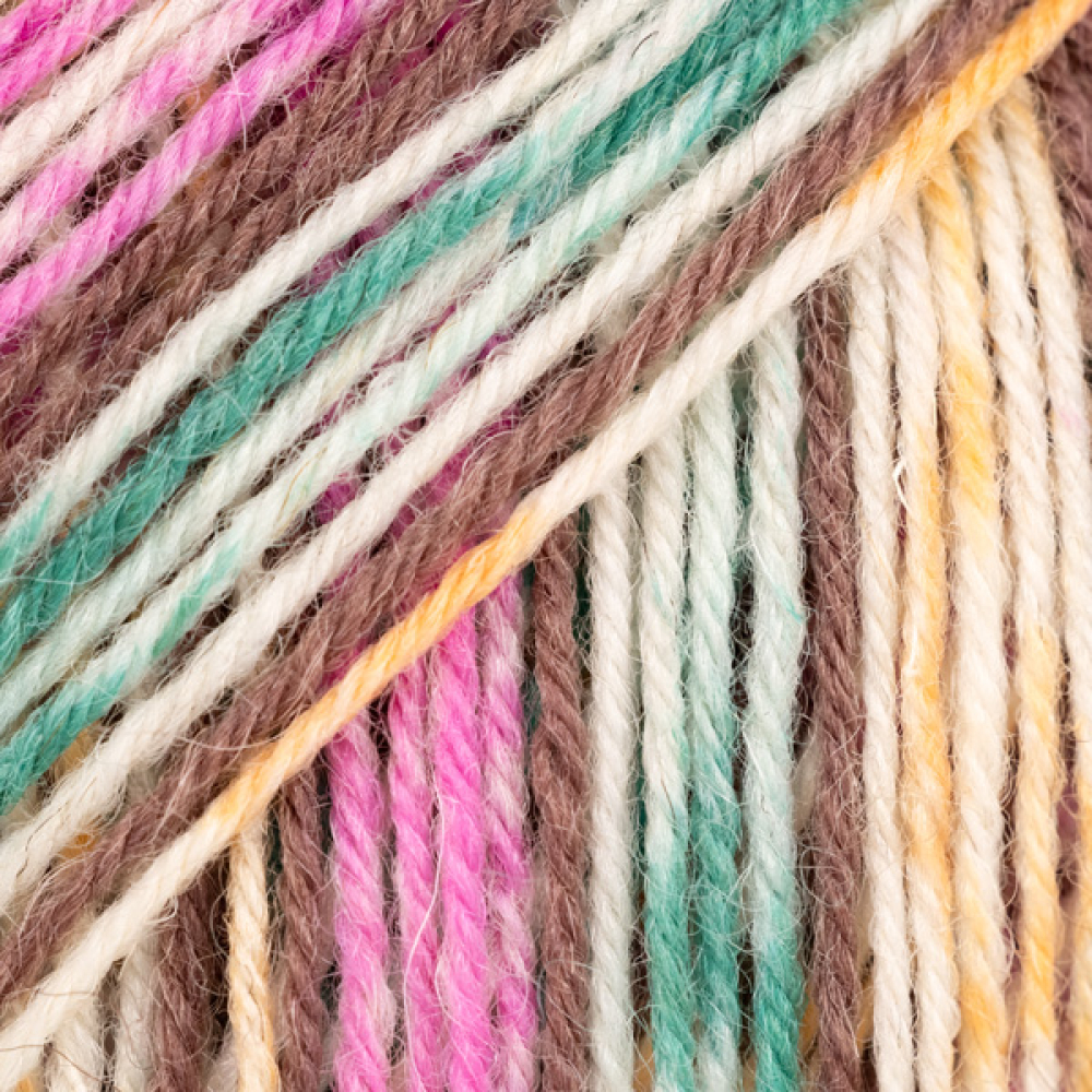 Slidstærkt som kun strømpegarn kan være! DROPS Fabel er et 4-trådet garn der er superwash-behandlet, hvilket gør det velegnet til daglig brug og det kan også maskinvaskes. I modsætning til almindeligt strømpegarn er DROPS Fabel spundet i en finere uldkvalitet. Dette gør DROPS Fabel velegnet til langt mere end bare sokker - prøv det for eksempel til babytøj! DROPS Fabel tre garnvarianter, der giver tøjet forskellige resultater: uni colour, som er ensfarvet; print, hvor varierede farver gentages regelmæssigt og long print, der ligner print men med længere gentagelser af hver farve. Både print og long print er farvet med en metode kaldet "fancy dyeing" som adskiller sig fra andre metoder, da der i hvert farveparti findes små variationer i både mønster og nuance. Dette er ikke en fejl, men en del af garnets egenskaber.