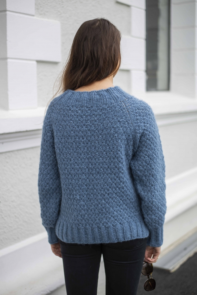 Sweater i vanedannende strukturstrik med raglan udtagninger. Trøjen strikkes oppefra og ned, og er næsten monteringsfri!