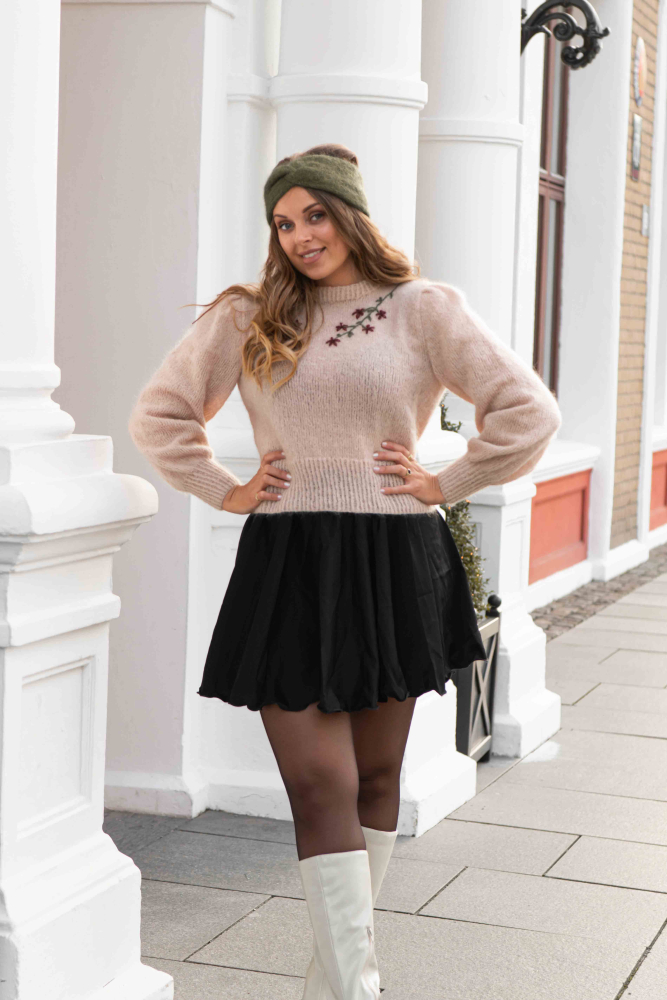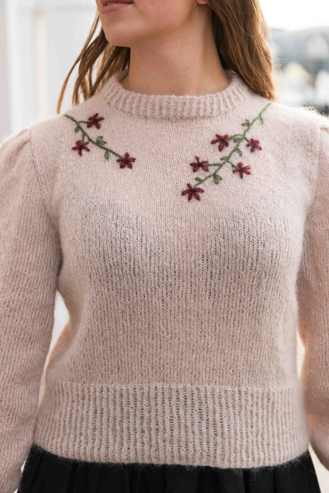 Hjertero trøjen er en lækker sweater, der kan styles på mange måder. Den har fin pasform og dekorativt broderi. Hvis du får garn i overskud fra broderiet, så sender vi ekstra opskrifter med som bonus, du kan vælge at lave et pandebånd eller fine hårbånd! Dette er altså en 3-i-1 strikkeopskrift, hvor du får 2 bonusopskrifter! Dette flotte design findes også som cardigan!