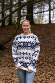Sådan finder du den rigtige størrelse: Brug mål fra tøj du allerede har og som passer dig. Sammenlign målene med opskriften. Vælg størrelse ud fra overvidden på overkroppen. Længde på både overkrop og ærmer kan du selvfølgelig strikke længere eller kortere efter behov, husk blot at bestille ekstra garn, hvis du vil tilføje noget på længden!