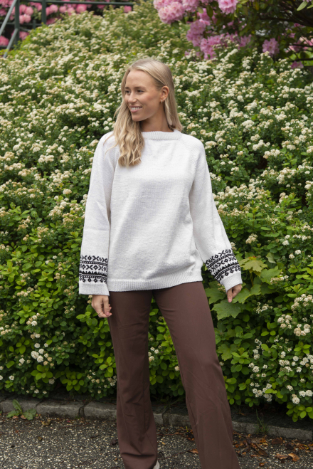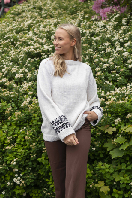 Alle vores strikkepakker indeholder mønster og komplet garnforbrug til ønsket størrelse, såfremt de angivne mål og strikkefasthed overholdes. Her finder du også information om hvilke strikkepinde og eventuelt tilbehør du skal bruge til denne smukke strik.