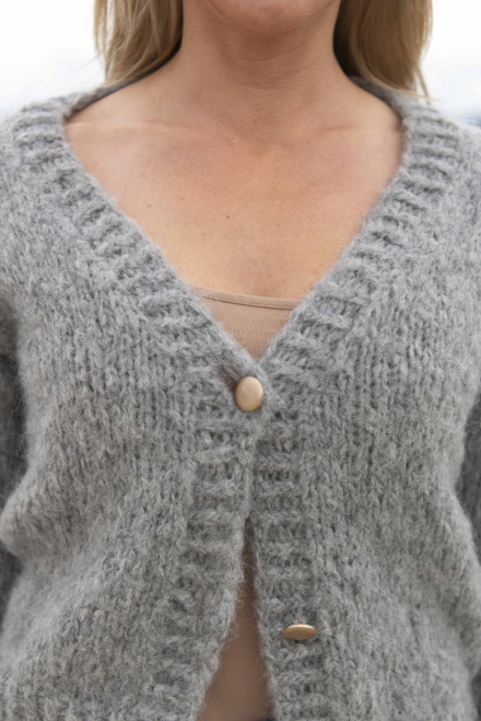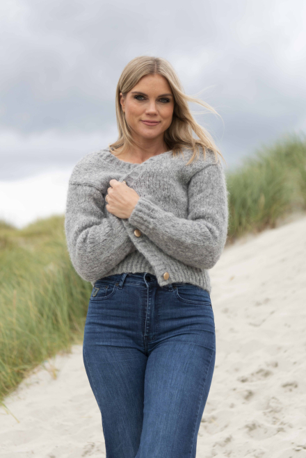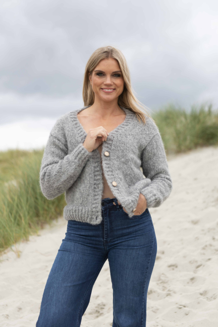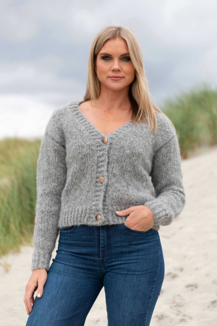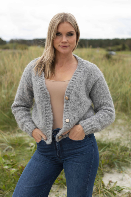 Shabana Cardigan er en kort jakke med v-hals og påsatte ærmer. Helt genial til kjoler og bukser med høj talje!