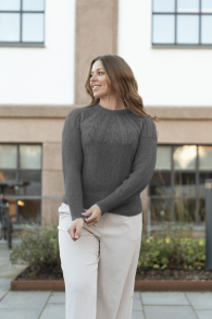 Glatstrik, ret, vrang. Trøjen strikkes rundt nedefra og op, deles derefter ved ærmegab og strikkes frem og tilbage. Ærmerne strikkes separat og monteres på. Sværhedsgrad: Middel