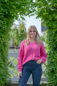 Du kan selv ændre farven på strikkepakken; vælg først den størrelse du vil strikke, så vises udvalget af farver herunder. Bemærk! Strikkeopskriften leveres altid i strikkepakkens originale farver: Pink, Gul og Skarp Grøn