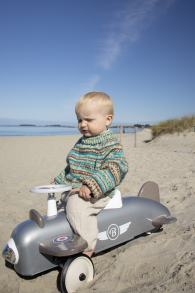 Du kan selv ændre farven på strikkepakken; vælg først den størrelse du vil strikke, så vises udvalget af farver herunder. Bemærk! Strikkeopskriften leveres altid i strikkepakkens originale farver: brun/grøn print, indigo meleret og sølv