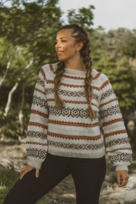 Alle vores strikkepakker indeholder mønster og komplet garnforbrug til ønsket størrelse, såfremt de angivne mål og strikkefasthed overholdes. Knapper og andet tilbehør købes separat.