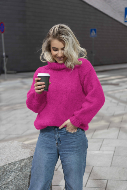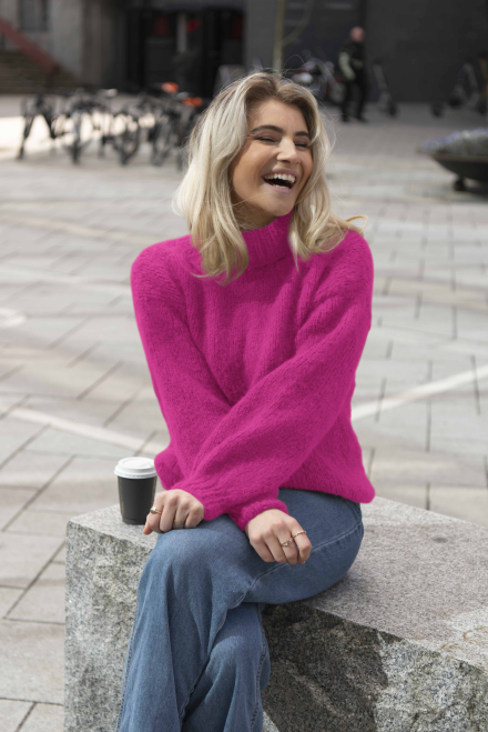 Furu Trøjen er en blød og lækker jumper med høj hals og påstrikkede ærmer – perfekt på kølige forårsdage!