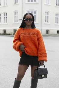 Furu Trøjen er en blød og lækker jumper med høj hals og påstrikkede ærmer – perfekt på kølige forårsdage!