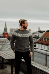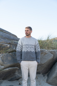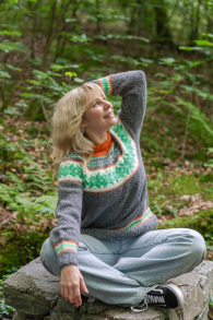 Skøn hyggelig sweater med dekorativt sildebensmønster. Trøjen strikkes nedefra og op med indsatte ærmer.