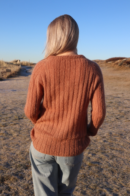 Du kan selv ændre farven på strikkepakken; vælg først den størrelse du vil strikke, så vises udvalget af farver herunder. Bemærk! Strikkeopskriften leveres altid i strikkepakkens originale farver: Nougat