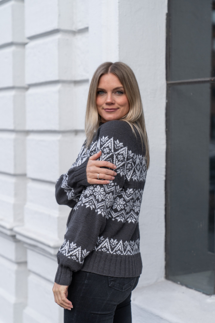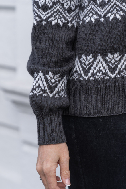 Gigi er en nydelig mønstret sweater i vores nye garn Tynn Merino – et dejligt, non-superwashbehandlet garn i blødeste merinould!