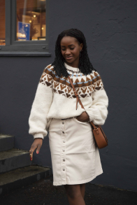 Alle vores strikkepakker indeholder mønster og komplet garnforbrug til ønsket størrelse, såfremt de angivne mål og strikkefasthed overholdes. Strikkepinde, knapper og andet tilbehør købes separat.