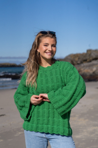 Bali Trøje er en lækker, hurtigstrikket, oversized sweater i blødeste Amiga. Den har desuden et simpelt og gentaget mønster.