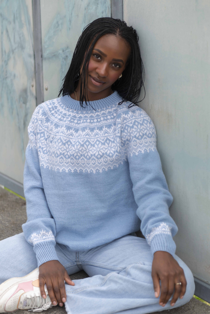 Alle vores strikkepakker indeholder mønster og komplet garnforbrug til ønsket størrelse, såfremt de angivne mål og strikkefasthed overholdes. Strikkepinde, knapper og andet tilbehør købes separat.