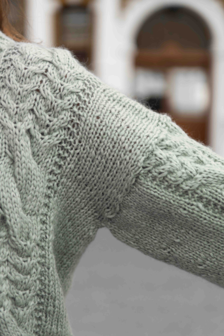 Alle vores strikkepakker indeholder mønster og komplet garnforbrug til ønsket størrelse, såfremt de angivne mål og strikkefasthed overholdes. Strikkepinde, knapper og andet tilbehør købes separat.