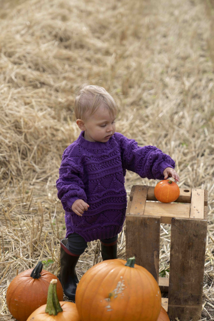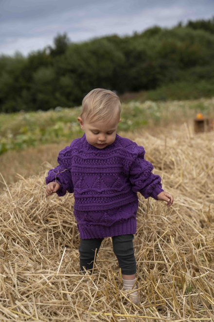 Du kan endda ændre farven på strikkepakken; vælg først den størrelse du vil strikke, så vises udvalget af farver herunder. Bemærk! Mønster bliver altid leveret i strikkepakkens originale farver: lilla