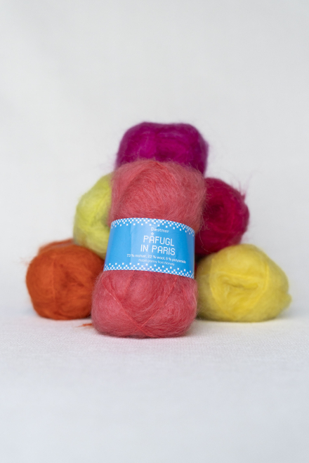 Fiberindhold: 73% mohair, 22% uld og 5% polyamid