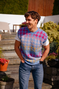 Du kan selv ændre farven på strikkepakken; vælg først den størrelse du vil strikke, så vises udvalget af farver herunder. Bemærk! Strikkeopskriften leveres altid i strikkepakkens originale farver: Isblå og Pastelfarvet Print