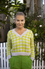 Alle vores strikkepakker indeholder mønster og komplet garnforbrug til ønsket størrelse, såfremt de angivne mål og strikkefasthed overholdes. Strikkepinde, knapper og andet tilbehør købes separat.