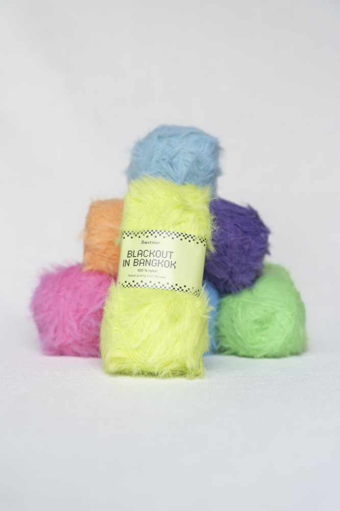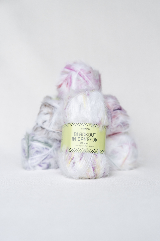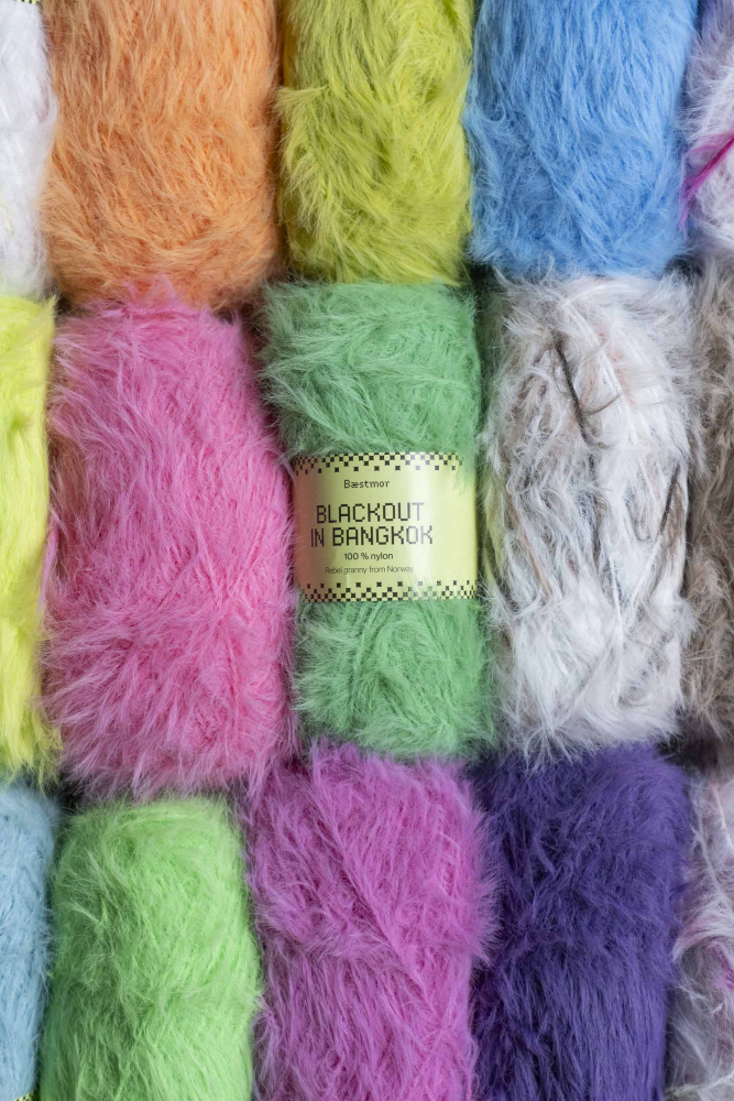 Blackout in Bangkok er et garn i 100 % nylon med en fantastisk blød fornemmelse. Det er et luftigt pelsgarn med en optimal strikkefølelse, hvor maskerne glider let på pindene.