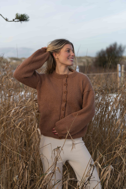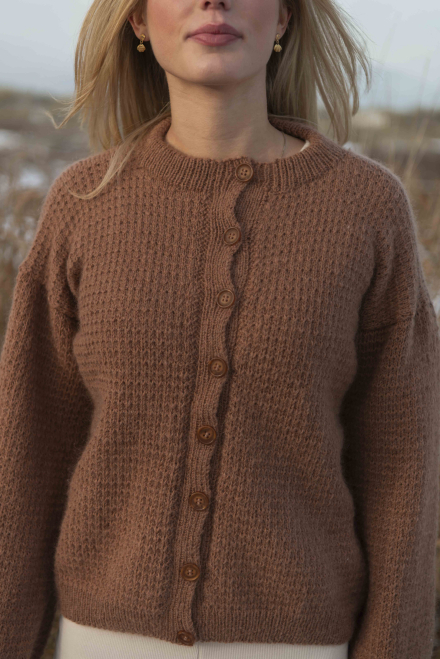 Alle vores strikkepakker indeholder mønster og komplet garnforbrug til ønsket størrelse, såfremt de angivne mål og strikkefasthed overholdes. Strikkepinde, knapper og andet tilbehør købes separat.