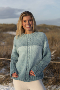 Du kan selv ændre farven på strikkepakken; vælg først den størrelse du vil strikke, så vises udvalget af farver herunder. Bemærk! Strikkeopskriften leveres altid i strikkepakkens originale farver: turquoise sky