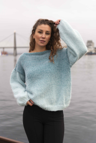 Du kan selv ændre farven på strikkepakken; vælg først den størrelse du vil strikke, så vises udvalget af farver herunder. Bemærk! Strikkeopskriften leveres altid i strikkepakkens originale farver: Turquoise Sky