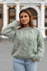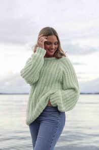 Erle Trøje Lysegrøn fra SD – en oversize hyggesweater med simpelt strukturmønster
