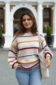 Du kan selv ændre farven på strikkepakken; vælg først den størrelse du vil strikke, så vises udvalget af farver herunder. Bemærk! Strikkeopskriften leveres altid i strikkepakkens originale farver: lys beige, sort og nougat