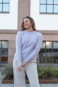 Du kan selv ændre farven på strikkepakken; vælg først den størrelse du vil strikke, så vises udvalget af farver herunder. Bemærk! Strikkeopskriften leveres altid i strikkepakkens originale farver: lys lilla og sølv