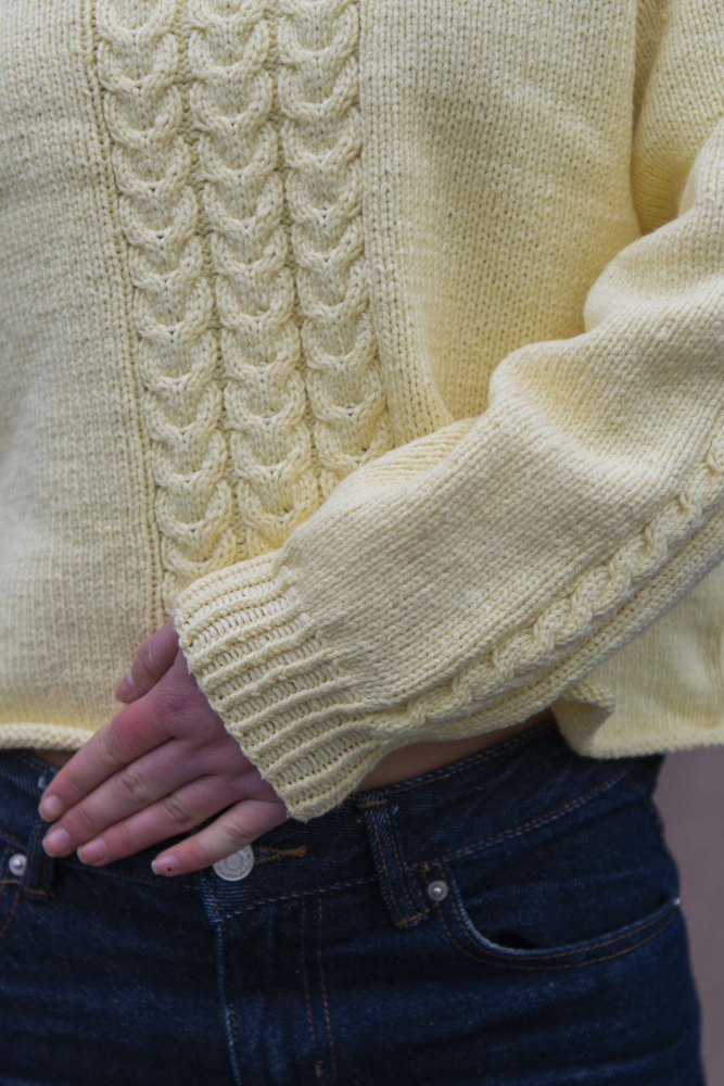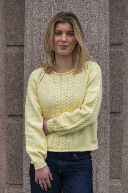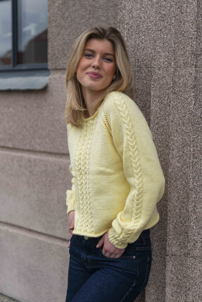 Alle vores strikkepakker indeholder mønster og komplet garnforbrug til ønsket størrelse, såfremt de angivne mål og strikkefasthed overholdes. Strikkepinde, knapper og andet tilbehør købes separat.