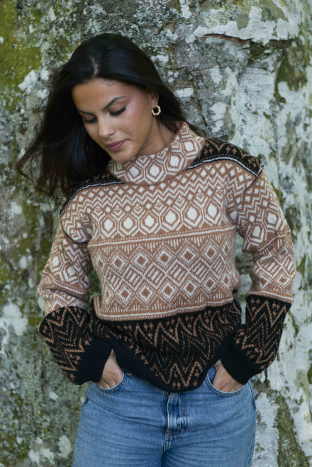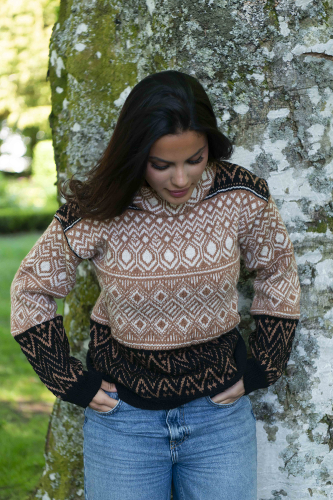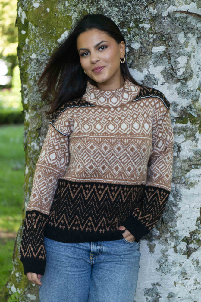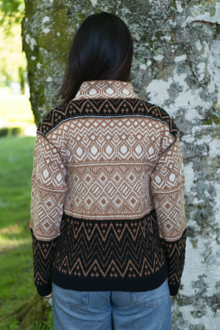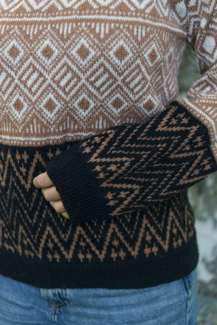 Du kan selv ændre farven på strikkepakken; vælg først den størrelse du vil strikke, så vises udvalget af farver herunder. Bemærk! Strikkeopskriften leveres altid i strikkepakkens originale farver: sort, nougat, lys beige meleret