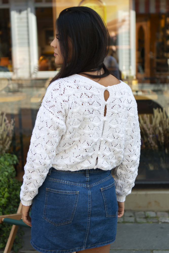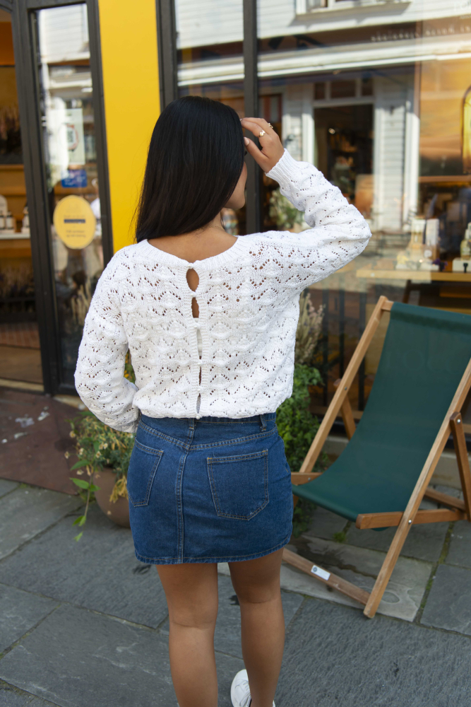 Gry Cardigan fra SD – kan bruges med knapperne foran – eller bag, alt efter smag og behag!