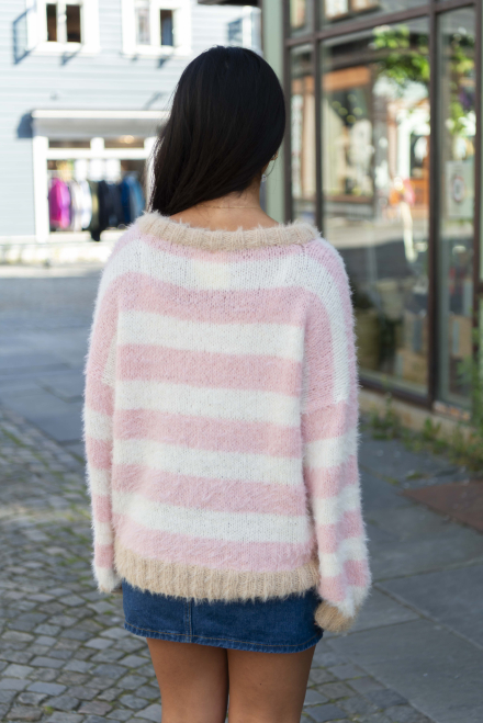 Du kan selv ændre farven på strikkepakken; vælg først den størrelse du vil strikke, så vises udvalget af farver herunder. Bemærk! Strikkeopskriften leveres altid i strikkepakkens originale farve: lys beige, lys rosa og hvid