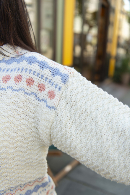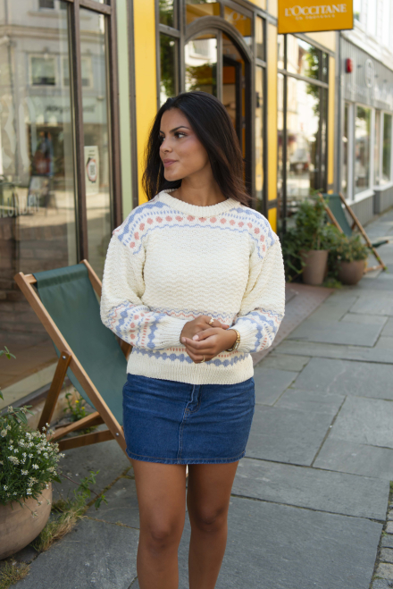 Alle vores strikkepakker indeholder mønster og komplet garnforbrug til ønsket størrelse, såfremt de angivne mål og strikkefasthed overholdes. Strikkepinde, knapper og andet tilbehør købes separat.
