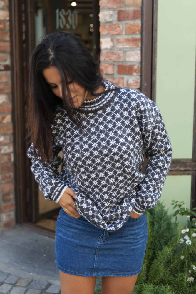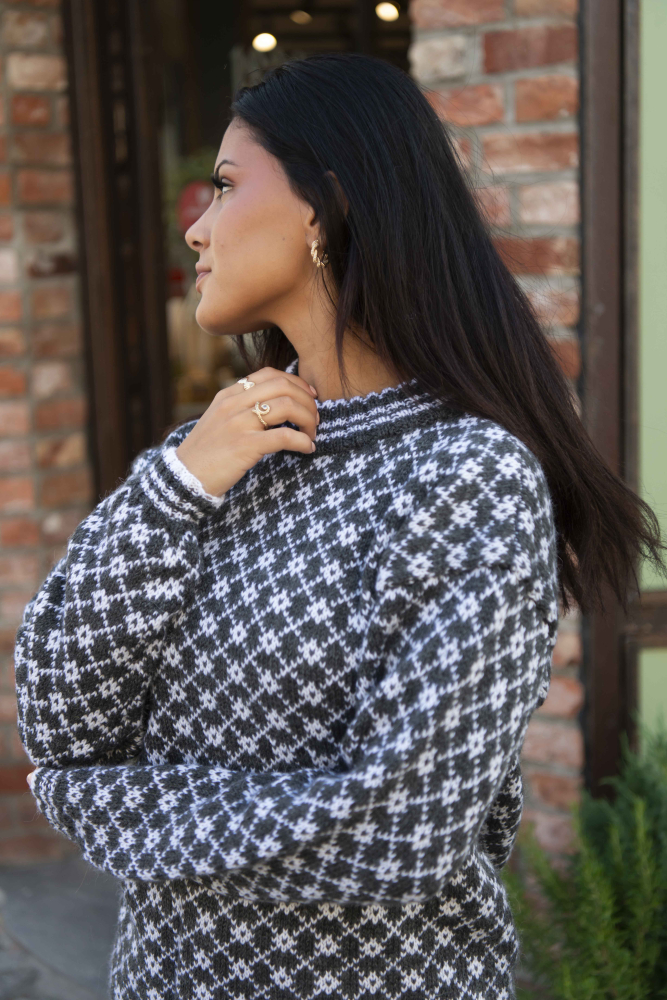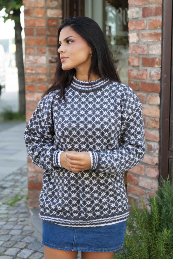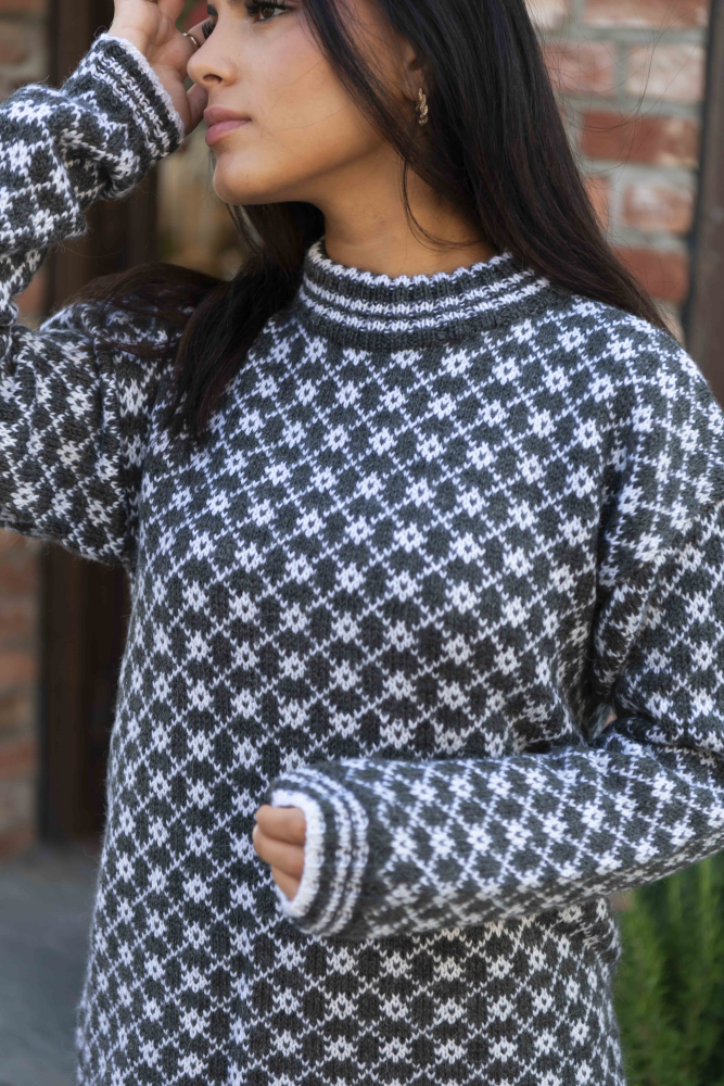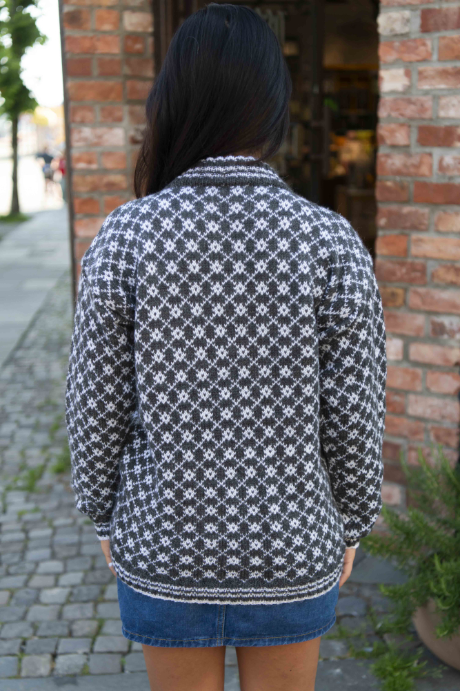 Du kan selv ændre farven på strikkepakken; vælg først den størrelse du vil strikke, så vises udvalget af farver herunder. Bemærk! Strikkeopskriften leveres altid i strikkepakkens originale farve: koksgrå og hvid