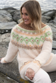 Alle vores strikkepakker indeholder mønster og komplet garnforbrug til ønsket størrelse, såfremt de angivne mål og strikkefasthed overholdes. Strikkepinde, knapper og andet tilbehør købes separat.