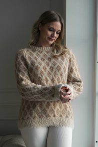 Du kan selv ændre farven på strikkepakken; vælg først den størrelse du vil strikke, så vises udvalget af farver herunder. Bemærk! Strikkeopskriften leveres altid i strikkepakkens originale farve: Lys brun og gul/brun meleret