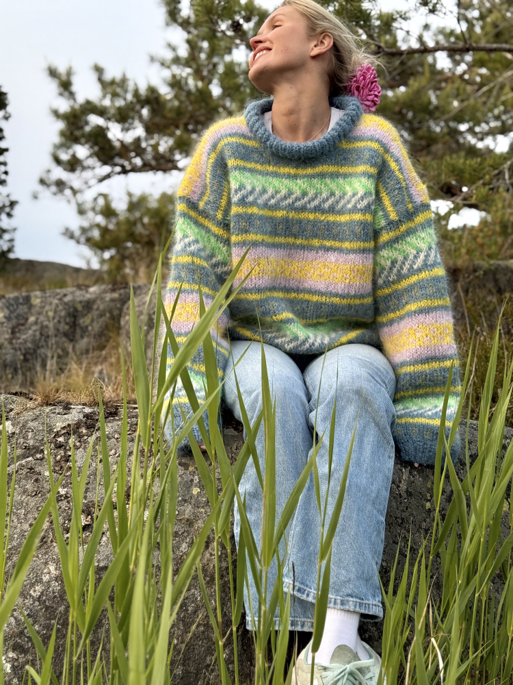 Du kan selv ændre farven på strikkepakken; vælg først den størrelse du vil strikke, så vises udvalget af farver herunder. Bemærk! Strikkeopskriften leveres altid i strikkepakkens originale farver: lavender, yellow, deep red, orange, matcha green og honey dew