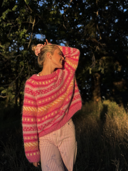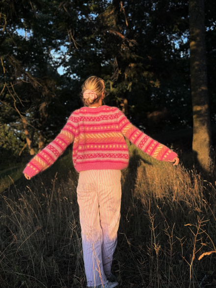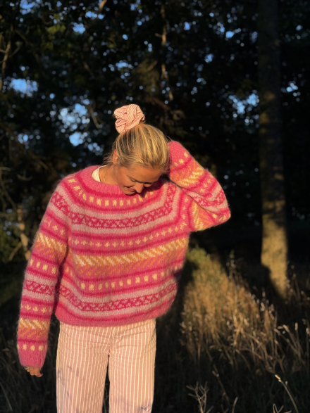 Alle vores strikkepakker indeholder mønster og komplet garnforbrug til ønsket størrelse, såfremt de angivne mål og strikkefasthed overholdes. Strikkepinde, knapper og andet tilbehør købes separat.