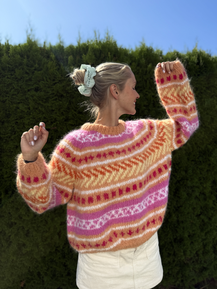 Alle vores strikkepakker indeholder mønster og komplet garnforbrug til ønsket størrelse, såfremt de angivne mål og strikkefasthed overholdes. Strikkepinde, knapper og andet tilbehør købes separat.