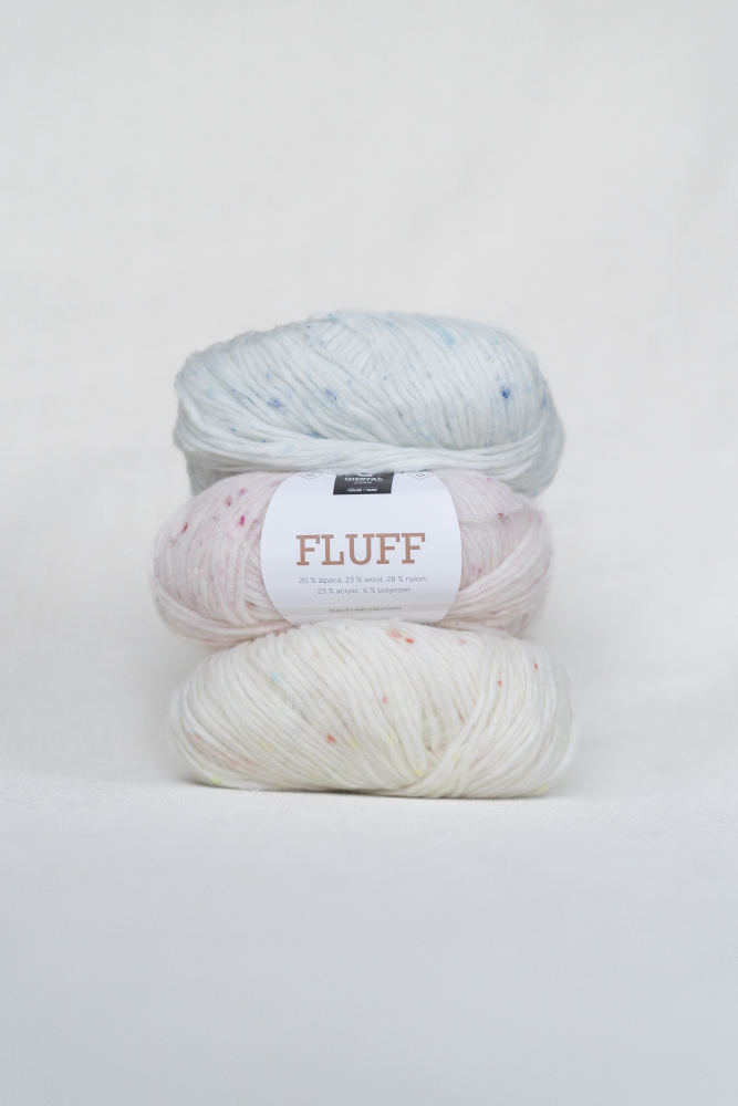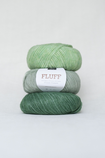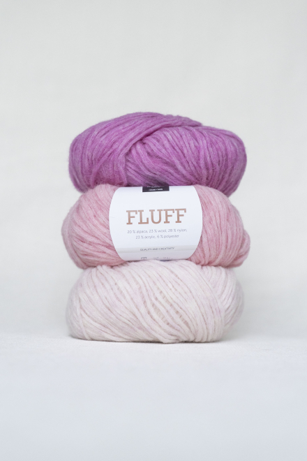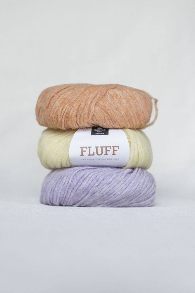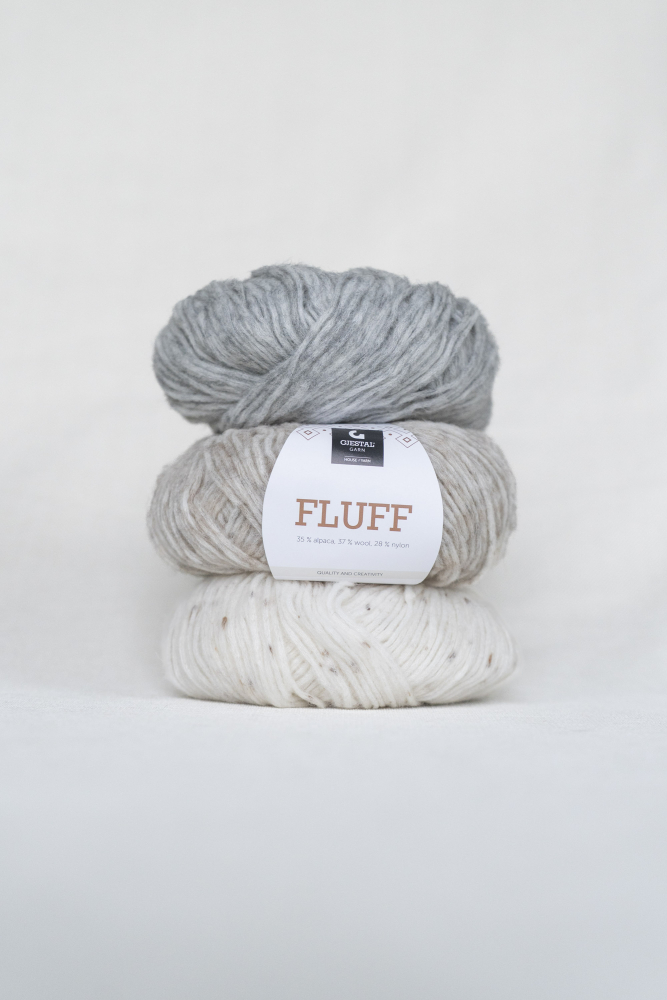 Fluff er et superblødt, let og luftigt blowgarn fra Gjestal, der skaber smukke strik med et dejligt fald. I dette garn blandes fibre af alpaca, uld og nylon for at skabe en spændende struktur. Den fint børstede overflade gør garnet dejligt blødt mod huden.