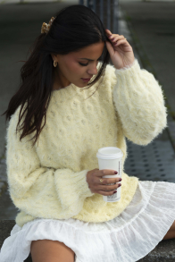 Alle vores strikkepakker indeholder mønster og komplet garnforbrug til ønsket størrelse, såfremt de angivne mål og strikkefasthed overholdes. Strikkepinde, knapper og andet tilbehør købes separat.