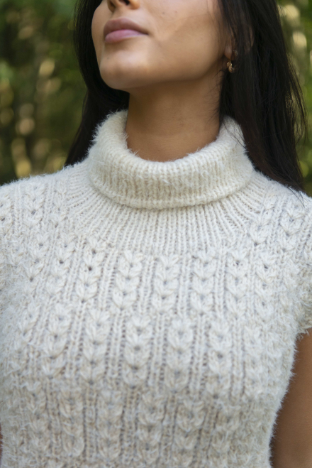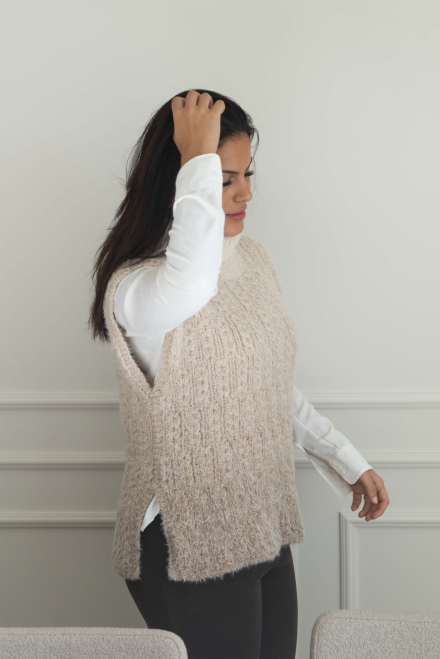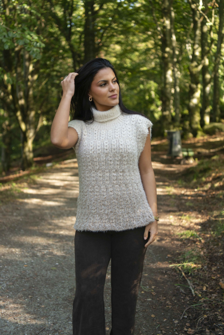 Alle vores strikkepakker indeholder mønster og komplet garnforbrug til ønsket størrelse, såfremt de angivne mål og strikkefasthed overholdes. Strikkepinde, knapper og andet tilbehør købes separat.