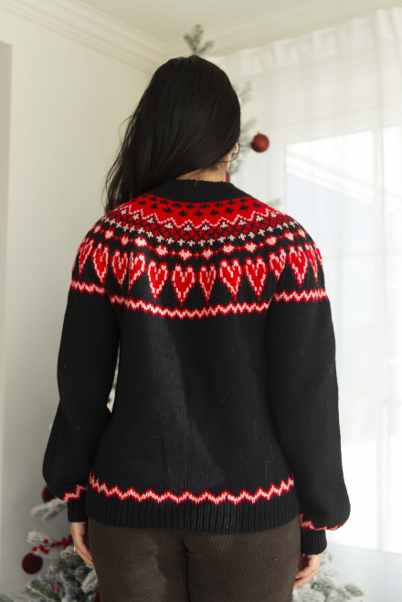 Du kan selv ændre farven på strikkepakken; vælg først den størrelse du vil strikke, så vises udvalget af farver herunder. Bemærk! Strikkeopskriften leveres altid i strikkepakkens originale farve: sort, rød og lys hindbær