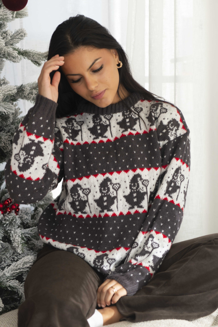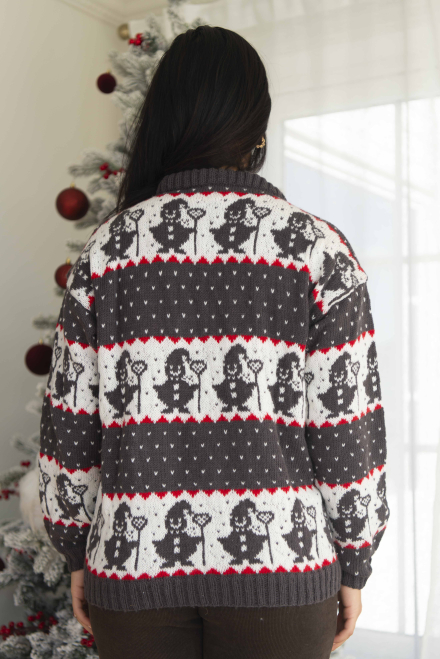 Du kan selv ændre farven på strikkepakken; vælg først den størrelse du vil strikke, så vises udvalget af farver herunder. Bemærk! Strikkeopskriften leveres altid i strikkepakkens originale farve: grå, hvid og rød