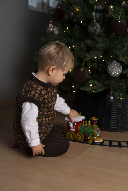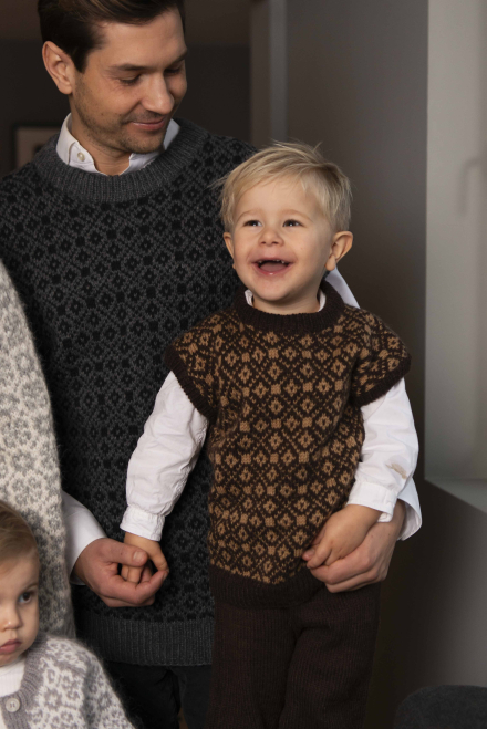 Du kan selv ændre farven på strikkepakken; vælg først den størrelse du vil strikke, så vises udvalget af farver herunder. Bemærk! Strikkeopskriften leveres altid i strikkepakkens originale farve: mørk brun og kamel