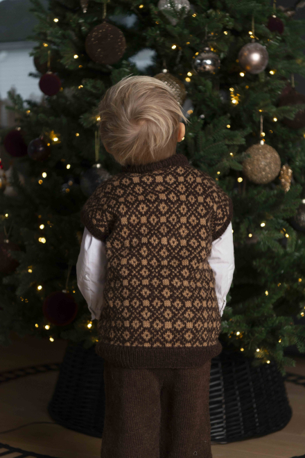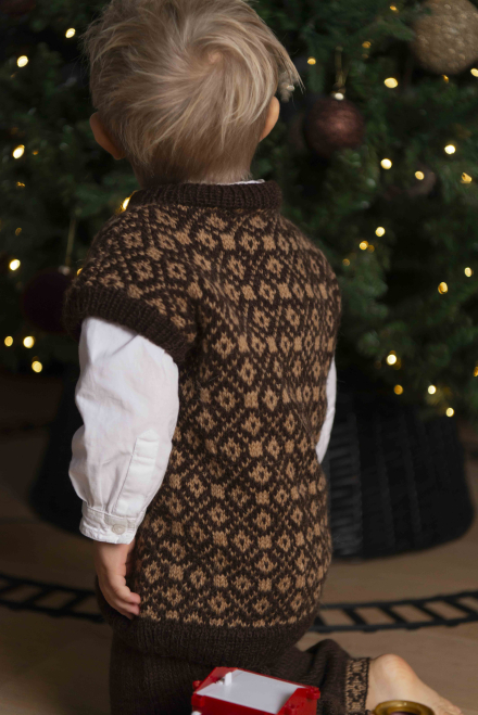 Du kan selv ændre farven på strikkepakken; vælg først den størrelse du vil strikke, så vises udvalget af farver herunder. Bemærk! Strikkeopskriften leveres altid i strikkepakkens originale farve: mørkbrun og kamel