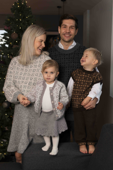 Alle vores strikkepakker indeholder mønster og komplet garnforbrug til ønsket størrelse, såfremt de angivne mål og strikkefasthed overholdes. Strikkepinde, knapper og andet tilbehør købes separat.
